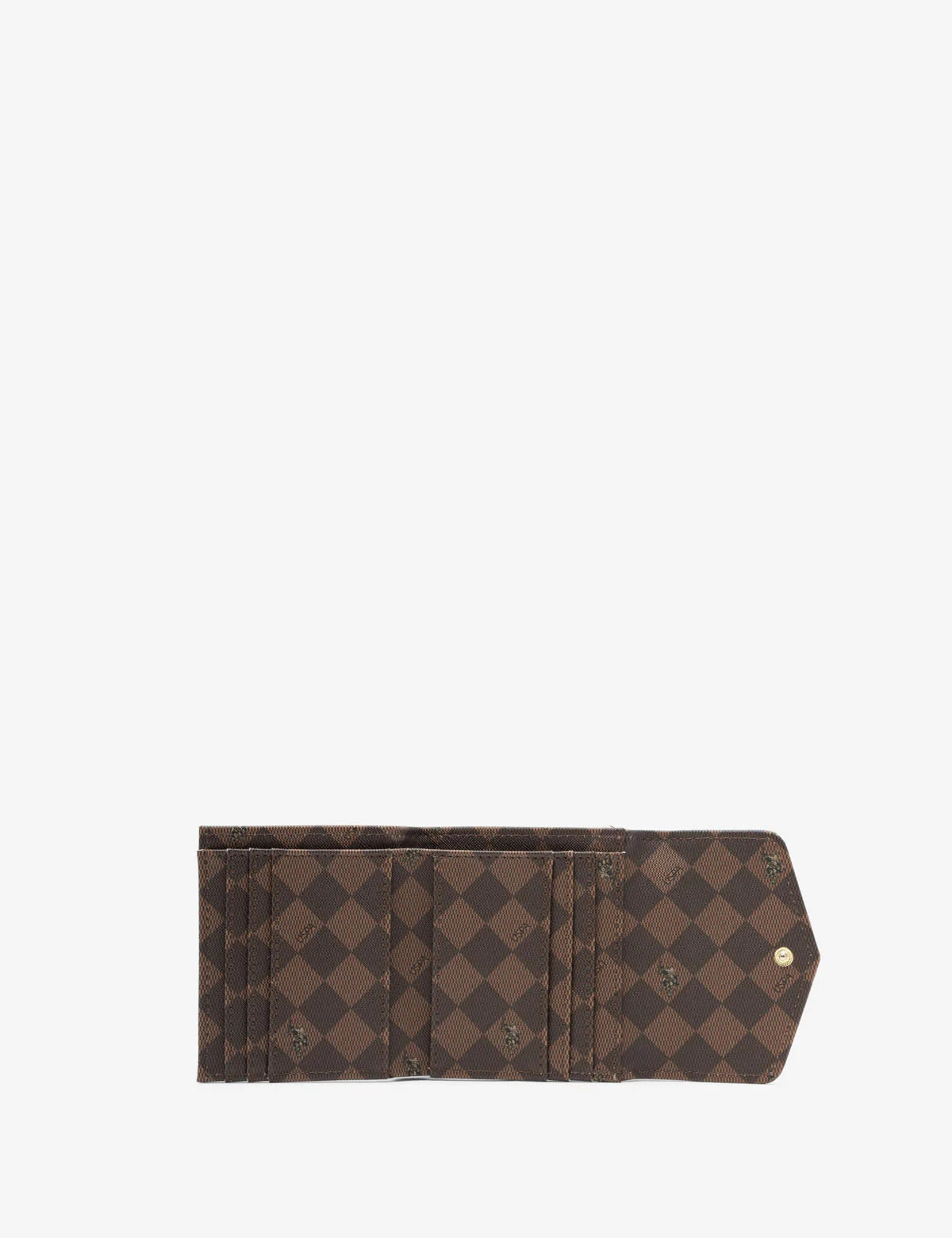 Confectionné avec un grand souci du détail, notre portefeuille à petit rabat losange se distingue par son logo métallique ornemental placé au centre sur le devant, avec un rabat et une fermeture à pression sécurisée. Une poche plate avant à accès facile et une poche zippée au dos, dotée d’une tirette griffée, offrent un espace de rangement optimal. À l’intérieur, vous trouverez une grande poche, six fentes pour cartes de crédit ainsi que deux poches plates supplémentaires. À associer avec l’un de nos sacs assortis Diamond Signature pour un ensemble parfaitement coordonné.