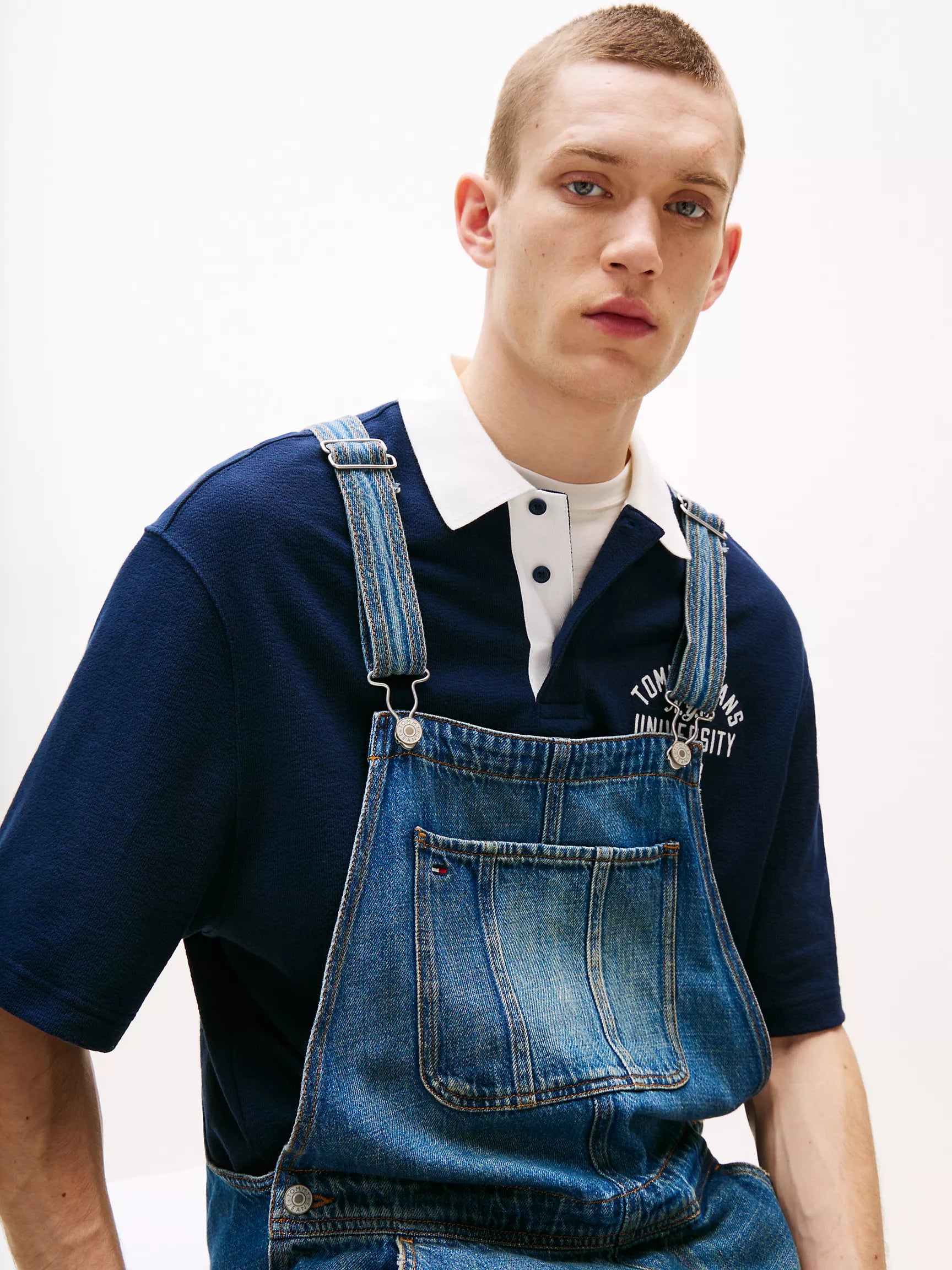 Salopette en jean Tommy Hilfiger pour homme, à la coupe régulière et facile à porter. Confectionnée en denim léger, elle est parfaite pour un style décontracté le week-end. Dotée de bretelles ajustables, de poches pratiques et réalisée à partir de coton régénératif et recyclé, elle allie confort, style et engagement durable.