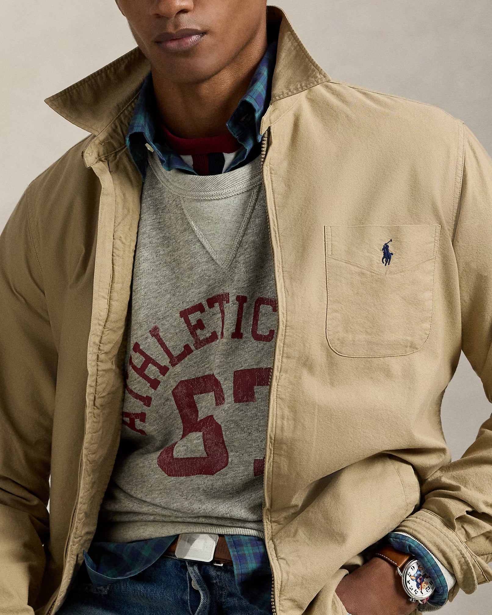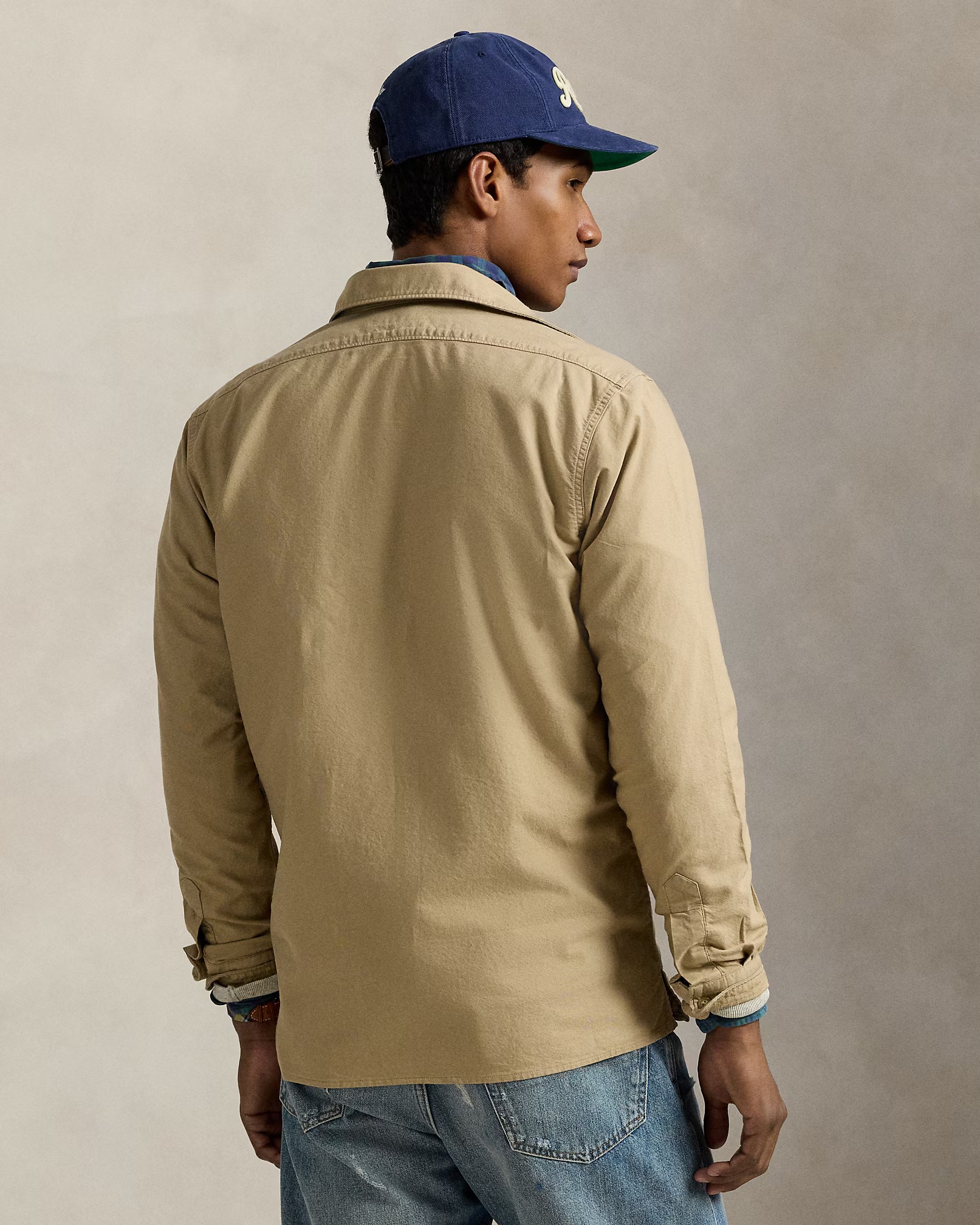 Surchemise confectionnée en tissu Oxford signature, traitée par un lavage exclusif offrant une douceur chinée et un effet froissé naturel. Le procédé de teinture en pièce apporte une profondeur de couleur subtile et élégante.