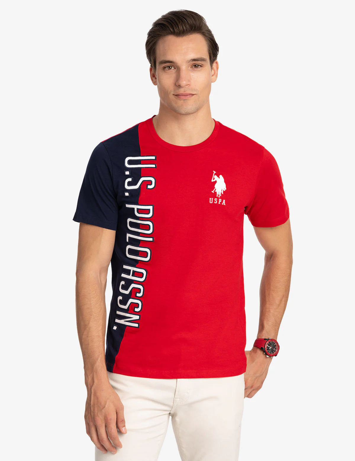 Logo U.S. Polo Assn. imprimé verticalement sur le côté droit.