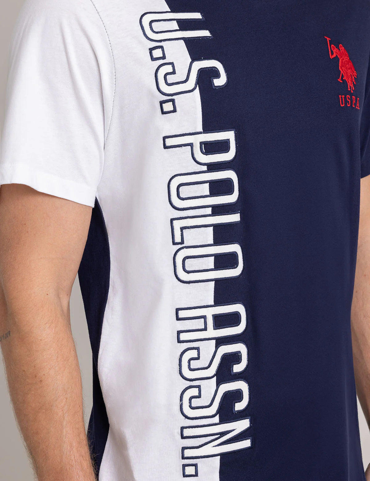 Logo U.S. Polo Assn. imprimé verticalement sur le côté droit.